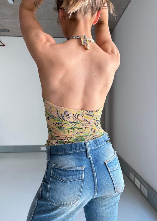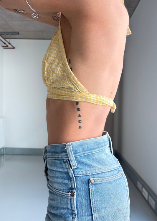 70S yellow CHEESECLOTH HALTER TOP
