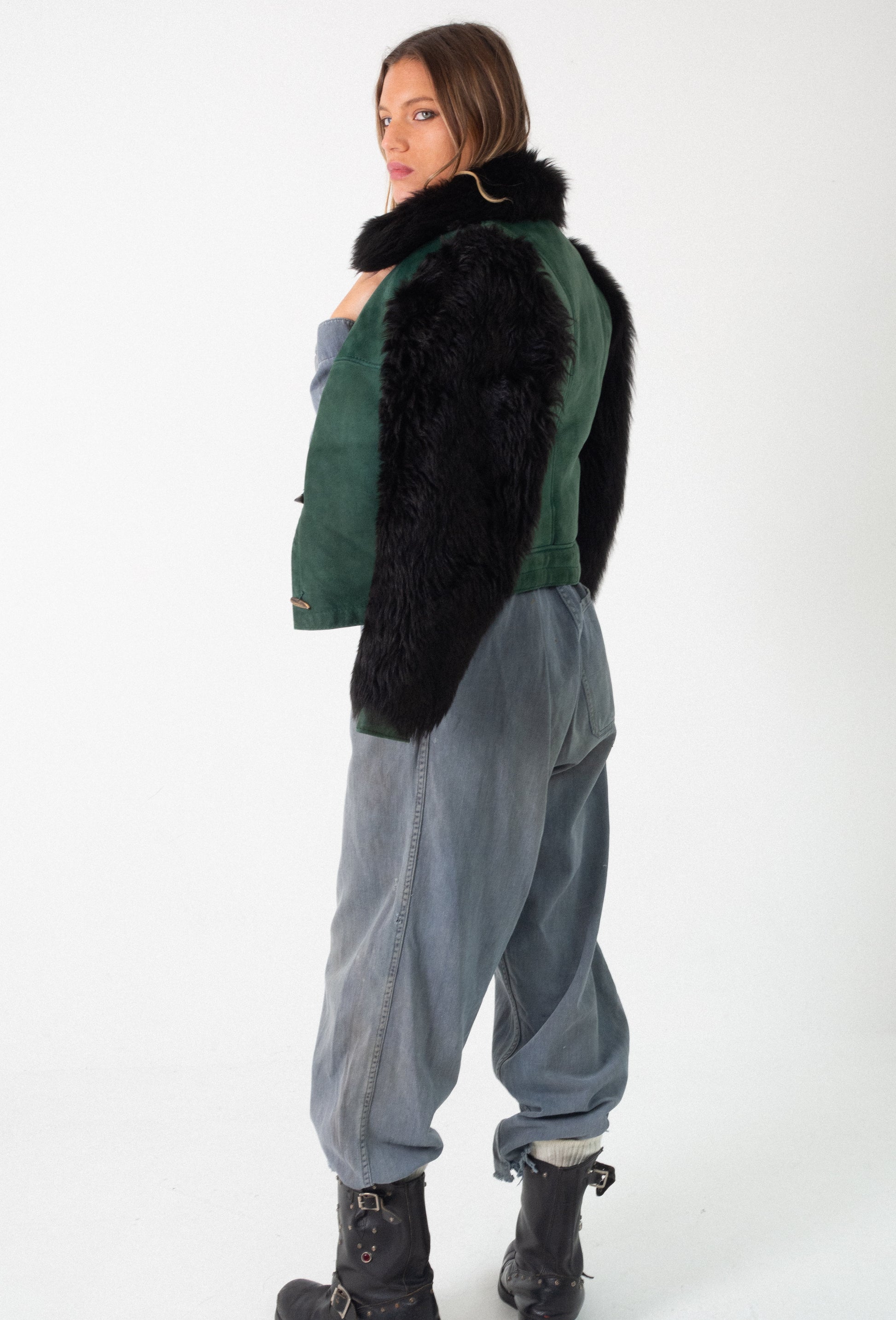 1970S GREEN SUEDE AND BLACK SHEEPSKIN COAT