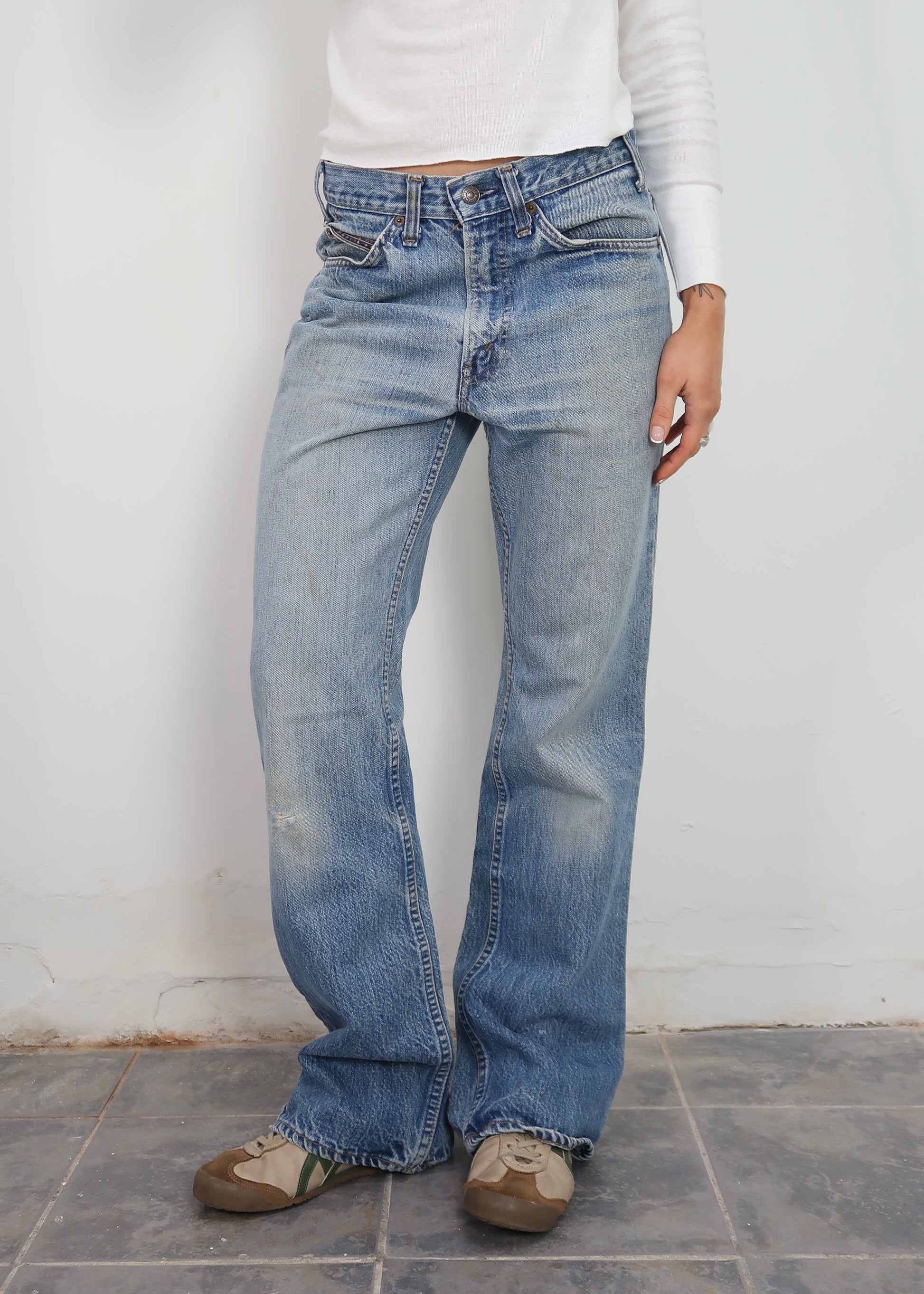 1980S WORN IN LEVIS JEANS. GREAT FADE AND WEARING. THEY DO HAVE SOME MARKINGS.