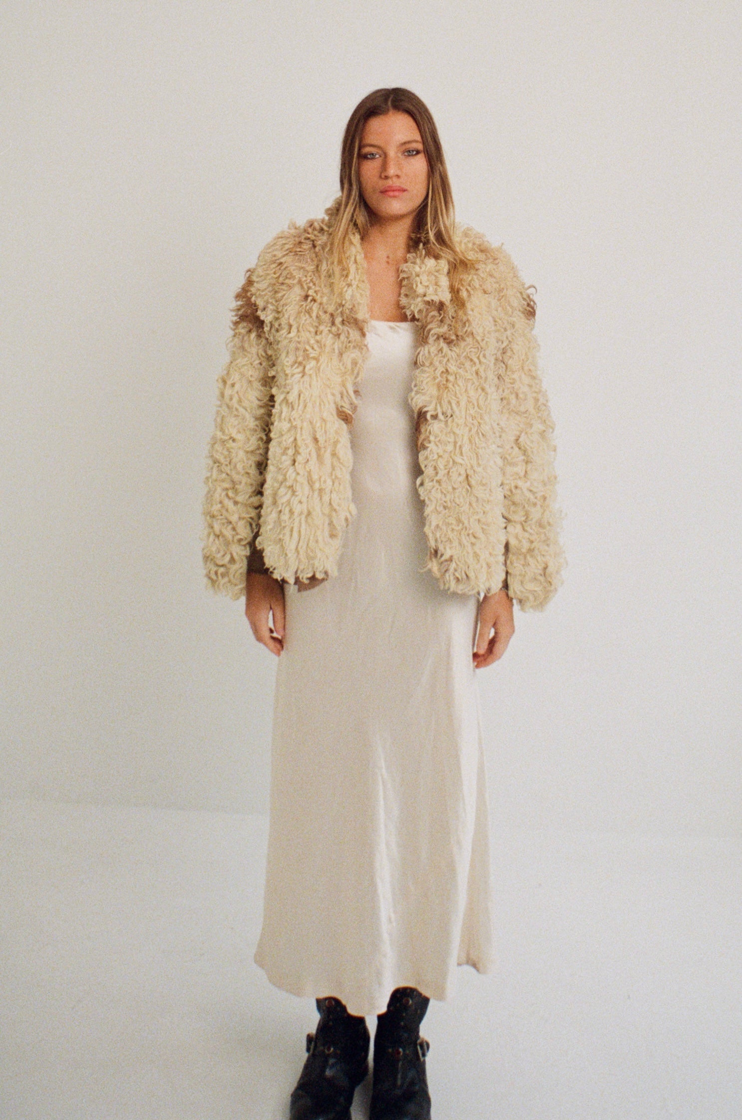 1970S MONGOLIAN SHEEP/ GOAT SKIN COAT.