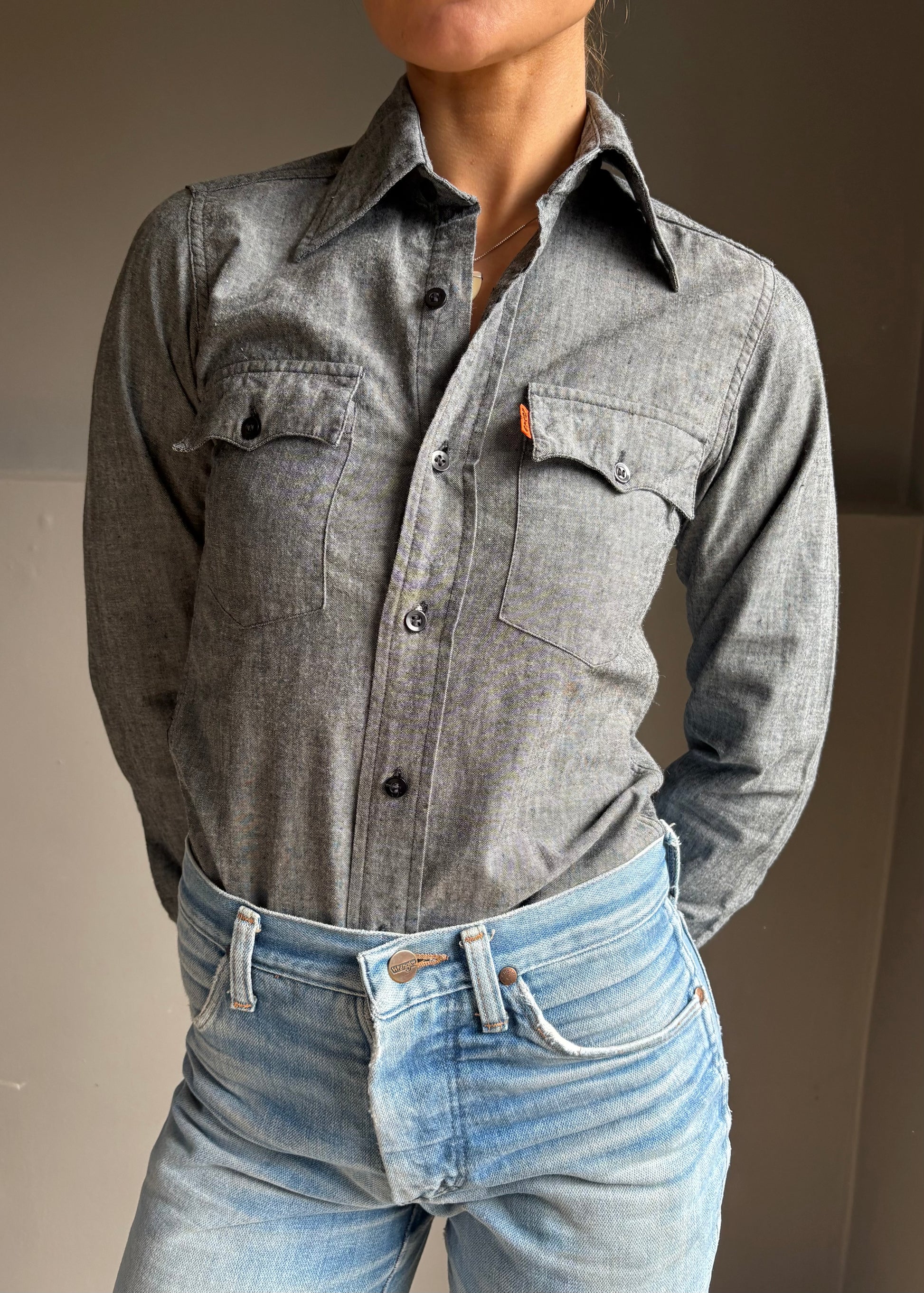 rare 70s black grey wash cotton Levi’s shirt