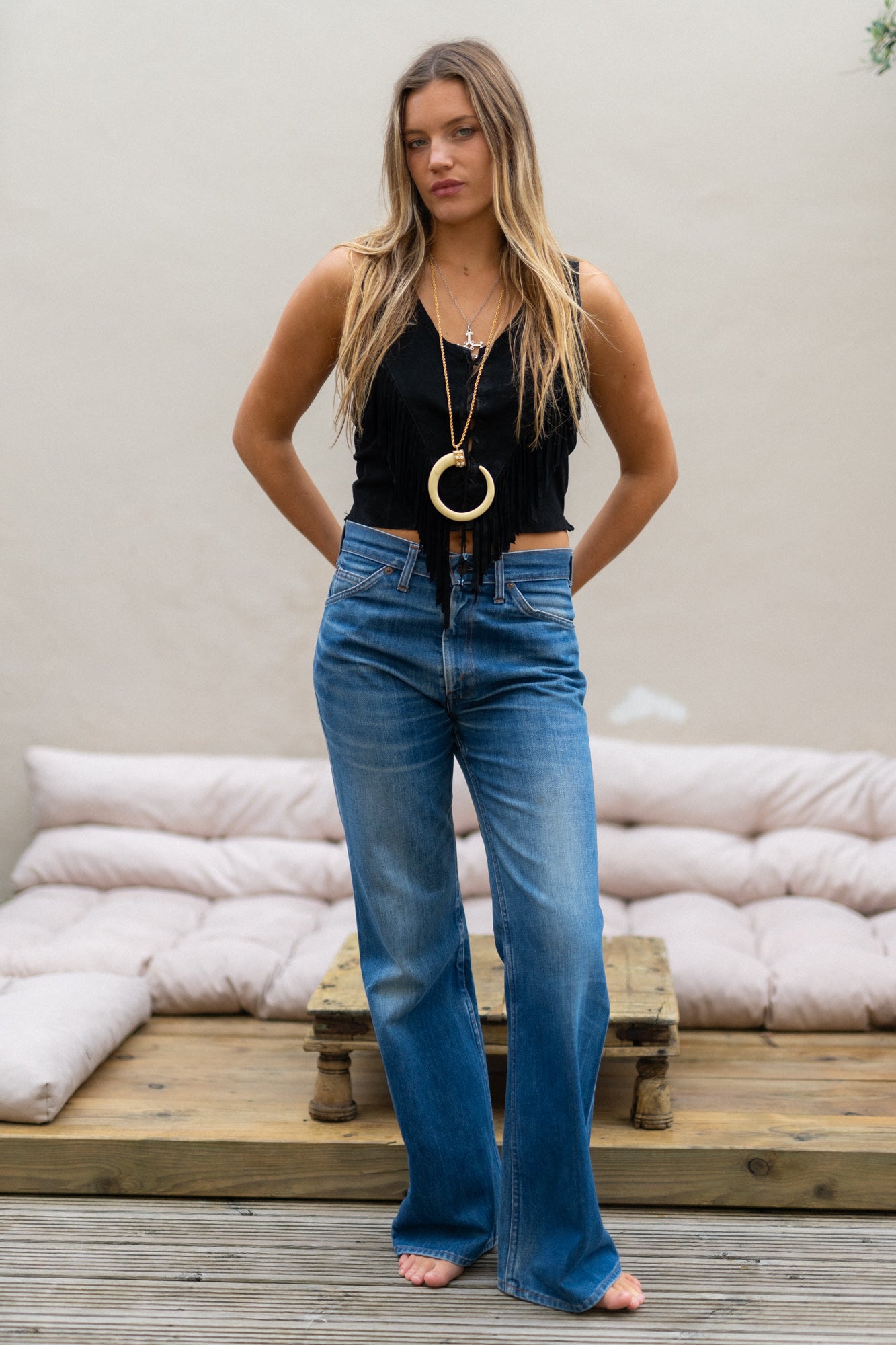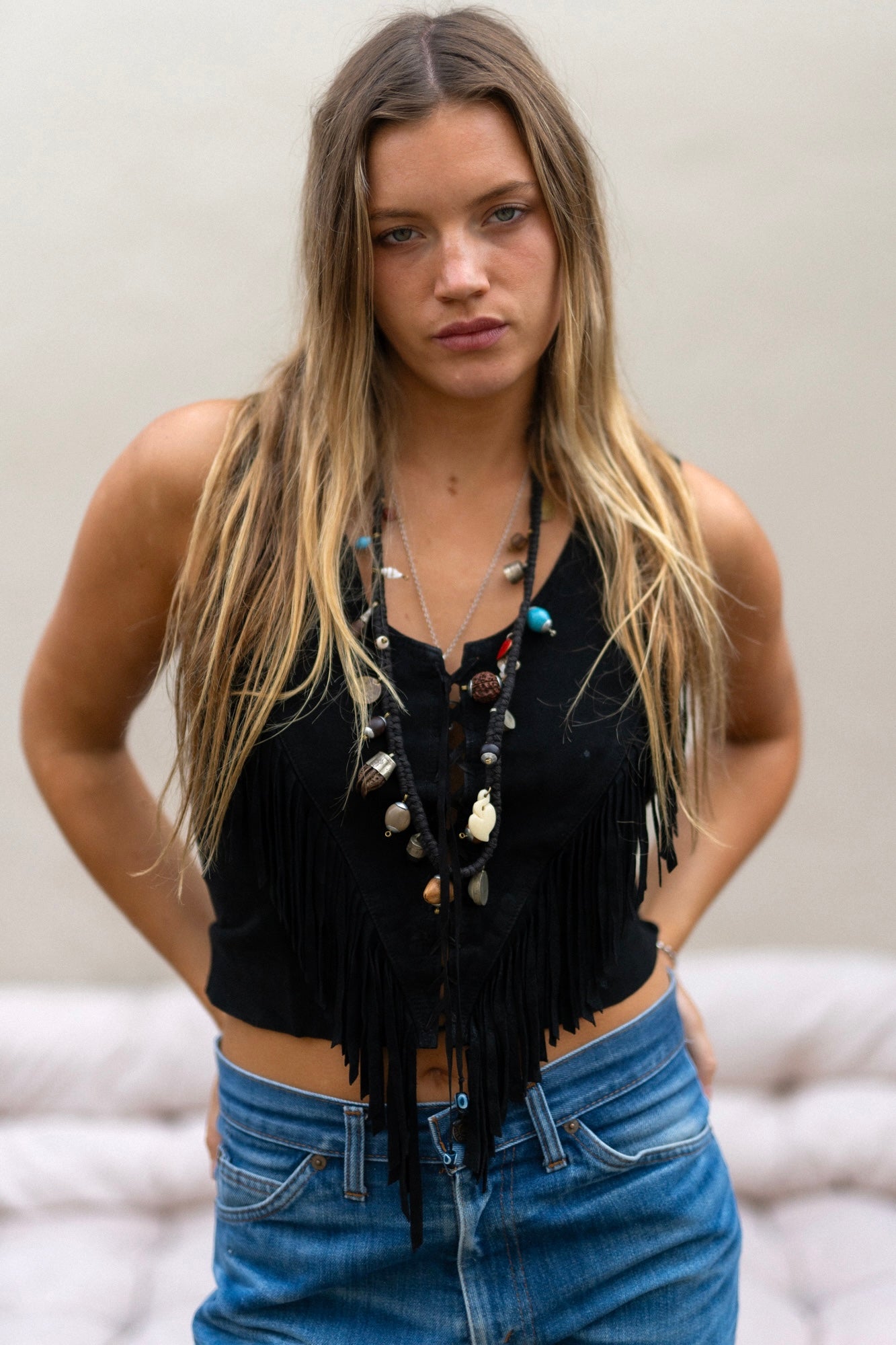 1970S SOFT SUEDE TOP. ZIP SIDE CLOSURE AND A LACE UP FRONT.