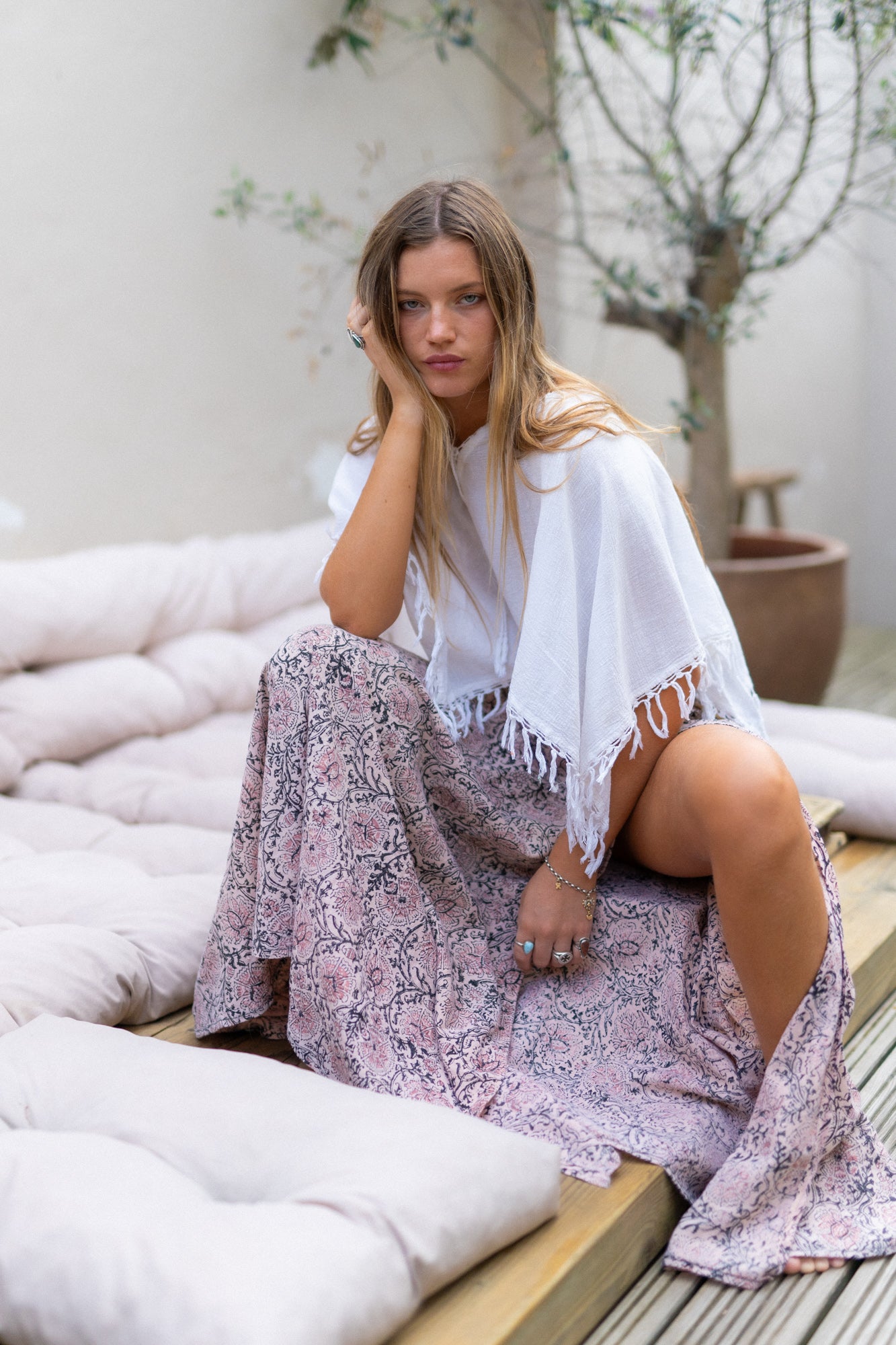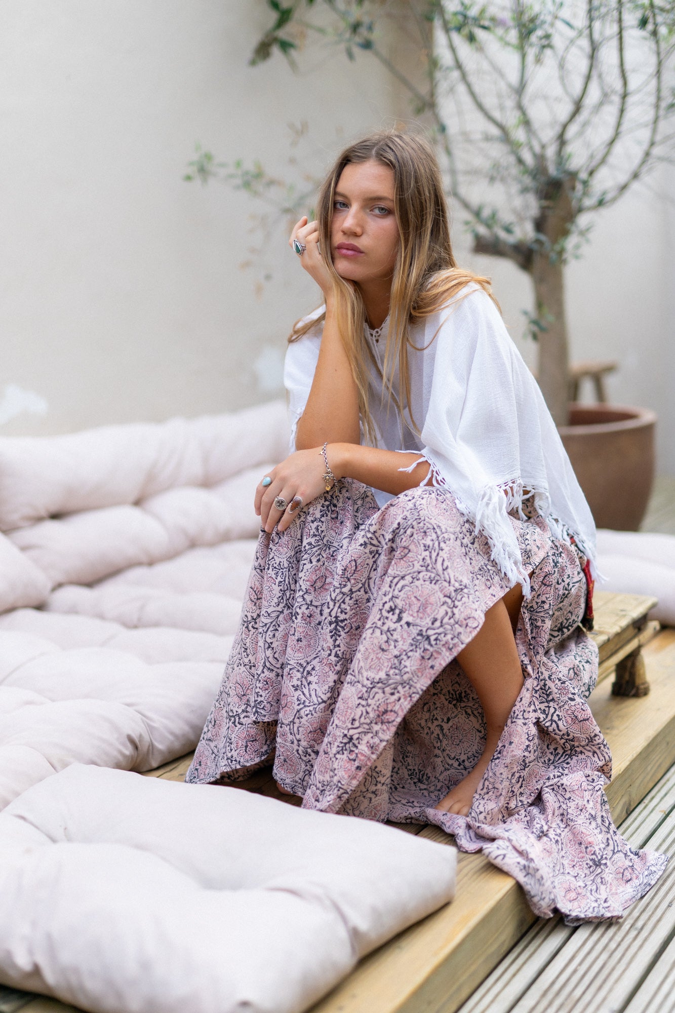 Incredible 1960s hippie cheesecloth poncho. SOFT COTTON WITH FRINGING ON THE HEM. IN GREAT VINTAGE CONDITION.